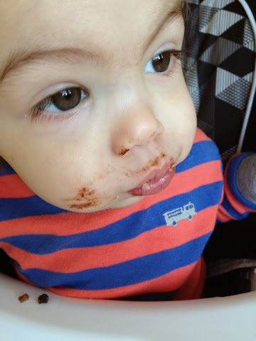 I LOVE that gunner can eat people food now. It's so much fun cooking & eating with him in the kitchen and he always really loves eating food by himself these days. And pancakes are so easy & not messy so he can just eat & drink on his own and be happy (while I finished cleaning the kitchen). He was pretty happy, crossed legs and all :)